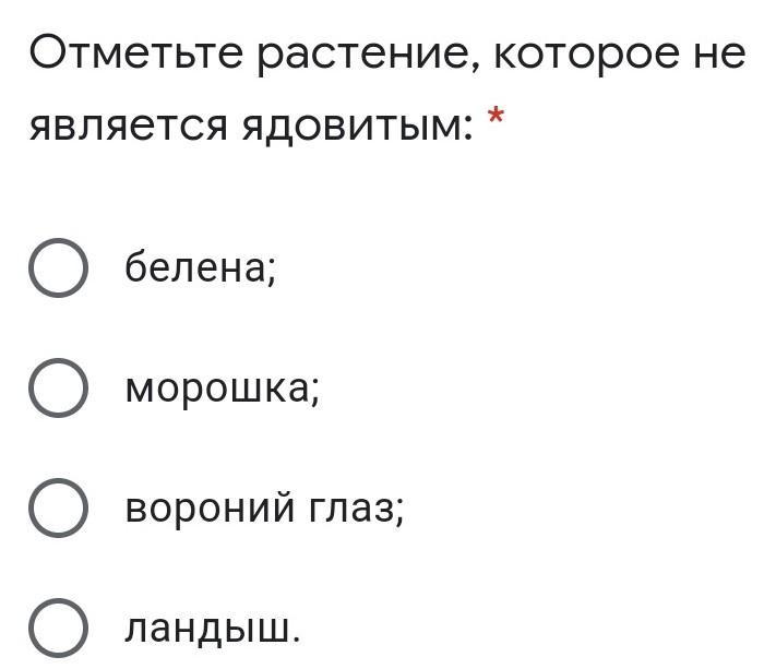 Отметьте растение, которое не * является ядовитым: Обелена; Оморошка; Овороний глаз; О ландыш.