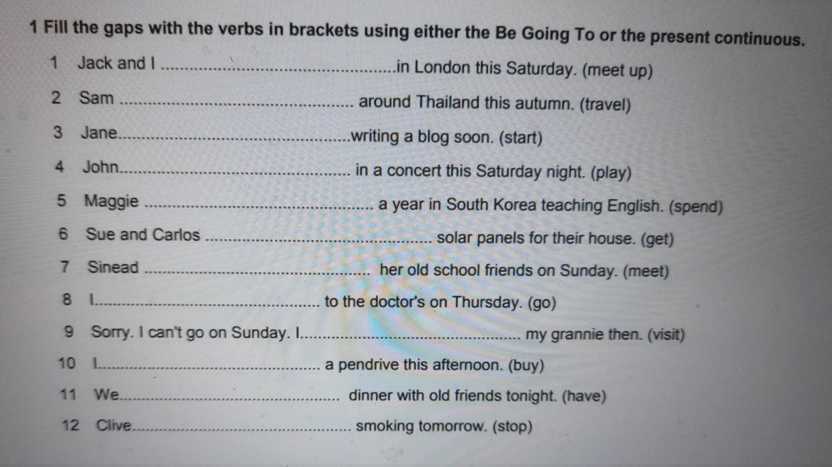 5. Maggie is meeting her old school friends on Sunday (meet)