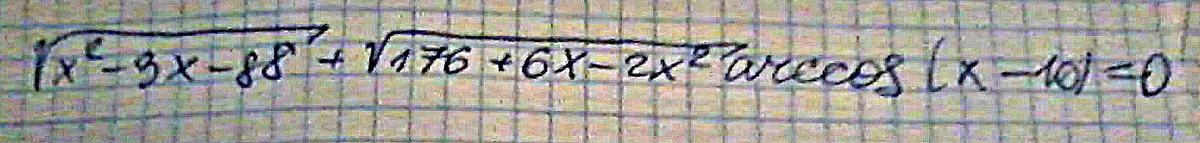 √(x^2-3x-88)+√(176+6x-2x^2) *arccos(x-10)=0