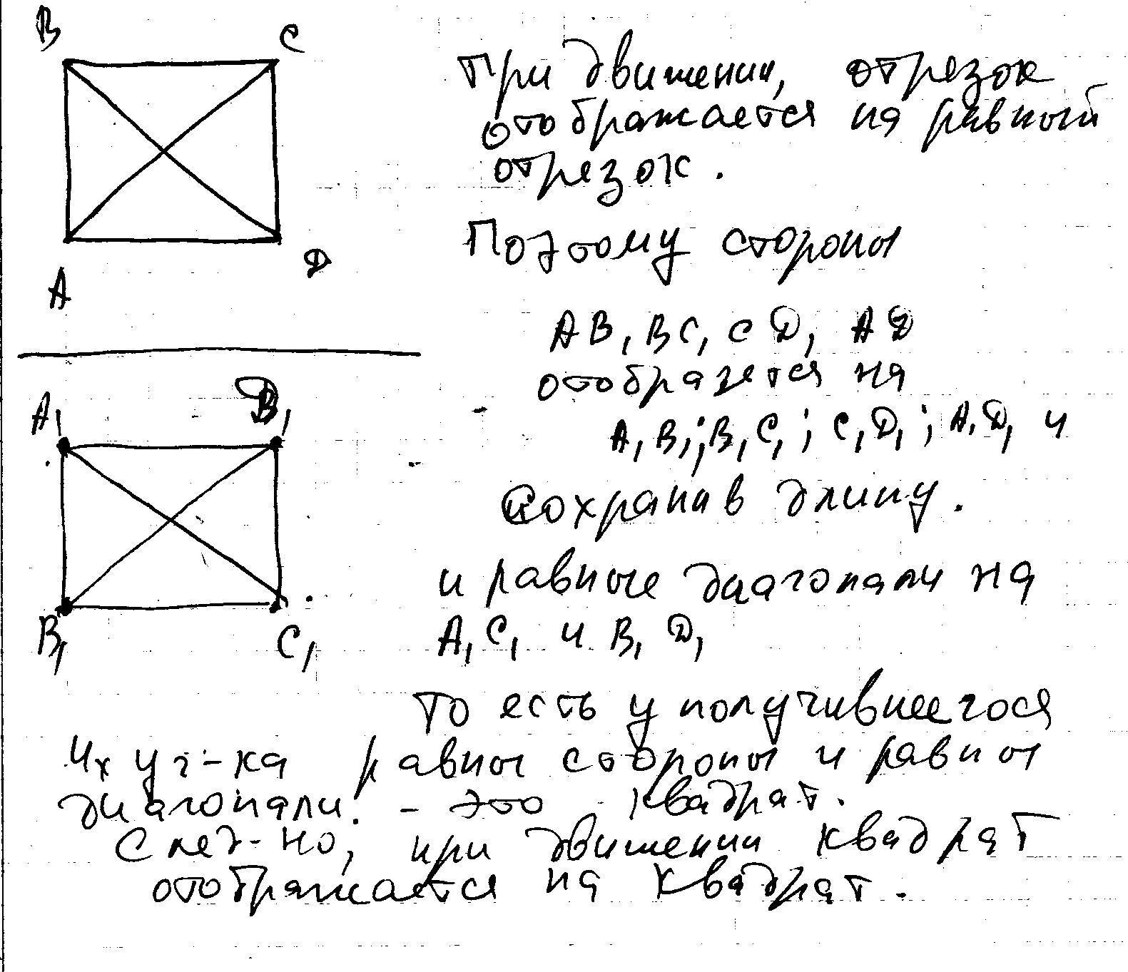 Докажите,что при движении квадрат отображается на квадрат