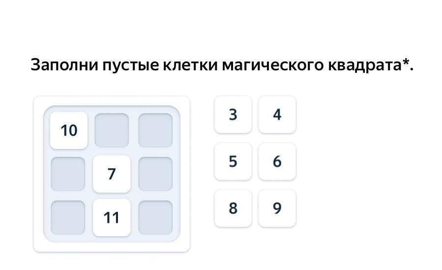 Заполни пустые клетки магического квадрата*.