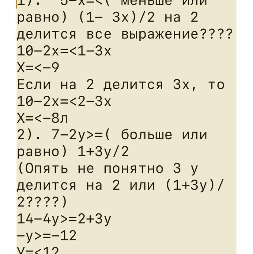 При каких действительных значениях y значение выражения 7 − 2y не меньше