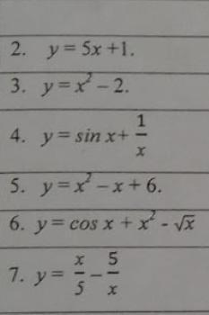 6.y'=-sin+(x)+2x-1√2 7. y= x²-25/5x