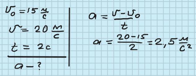 від 15 м/с до 20м/с за 2 с. Визначити прискорення руху автомобіля.