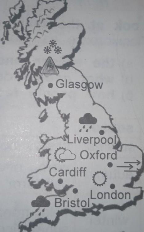 2 Look at the map of England, Scotland and Wales. Write the weather. Посмотрите на карту Англии, Шотландии и Уэльса. Напишите погоду.