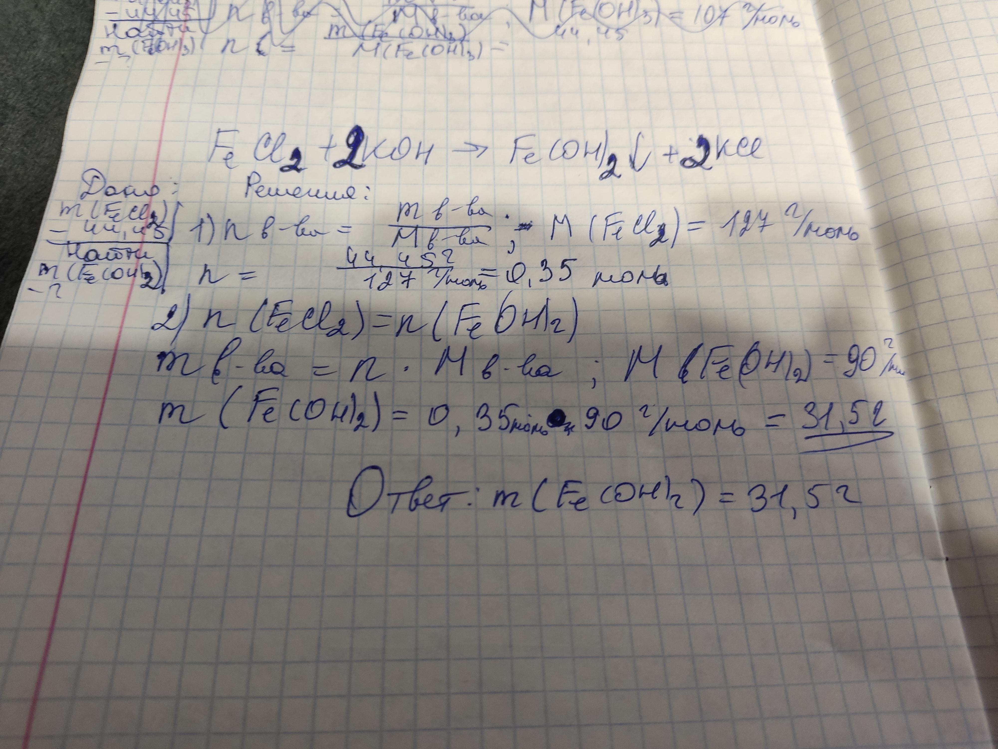 Найти массу осадка, который образуется при взаимодействии 44,45 г хлорида железа (II) со щелочью.