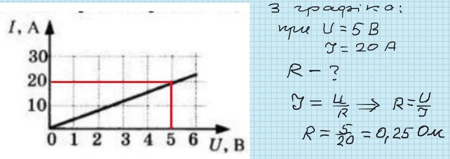 На рисунку подано графік залежності сили струму від напруги для деякого провідника Скориставшись графіком, визначте опр цього провідника.