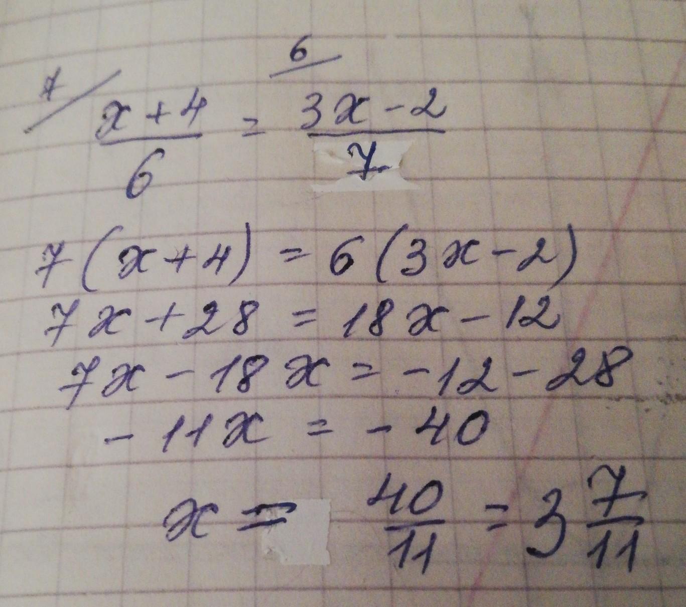 Ответ:если там во втором делят на 7 то ответ х=40/11