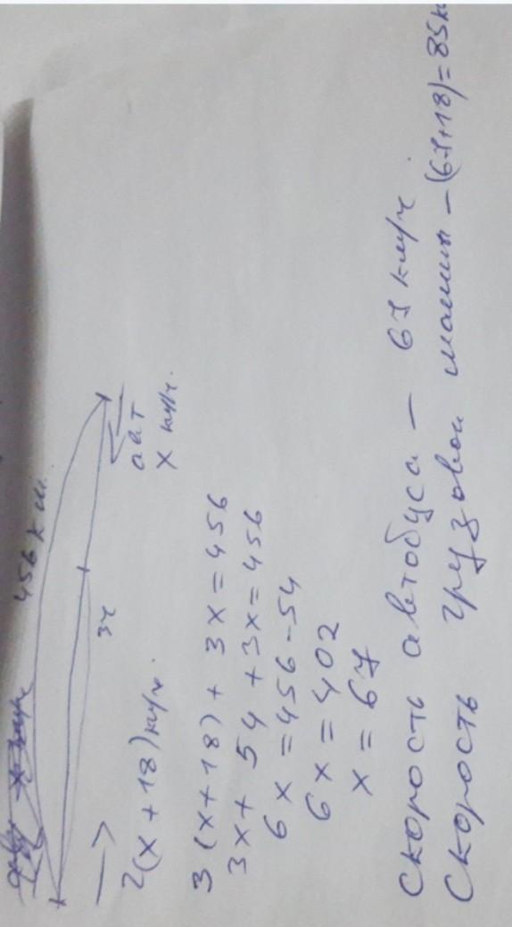 Автобус и грузовая машина скорость который выше на 18км/ч больше от скорости автобуса, выехали одновременно на встречу друг другу из разных мест, расстояние между которыми 308км.