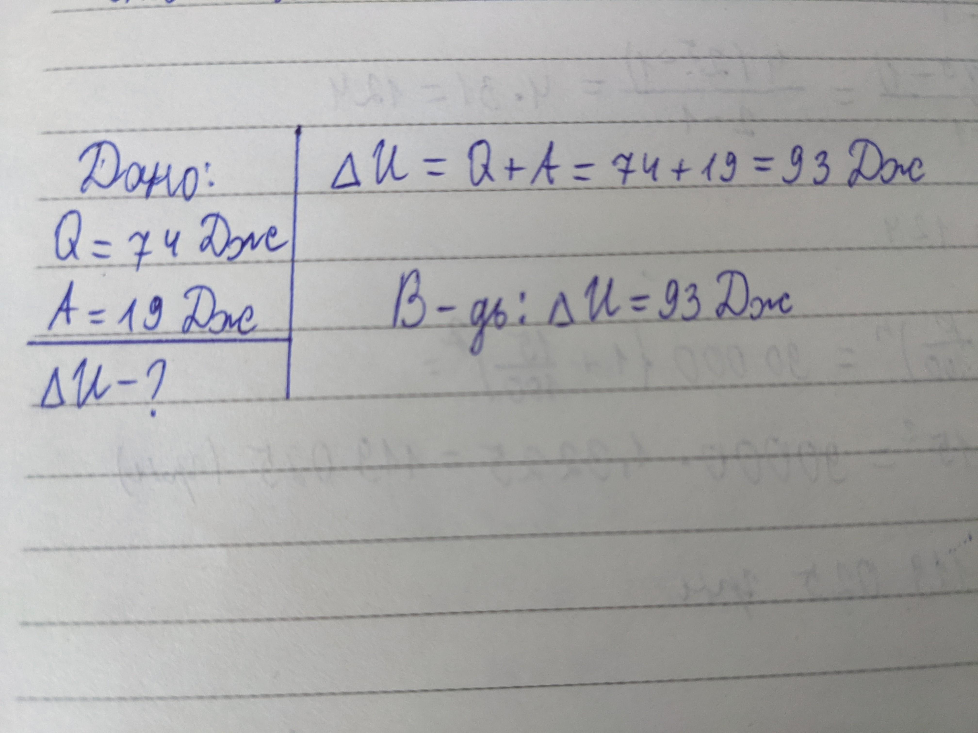 Визначити зміну внутрішньої енергії газу , який отримав 74 Дж теплоти , якщо при цьому над газом виконана робота 19 Дж