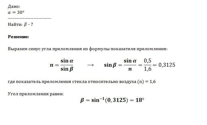 Луч света падает из воздуха на поверхность стекла найдите угол преломления если угол падения равен 30 градусам