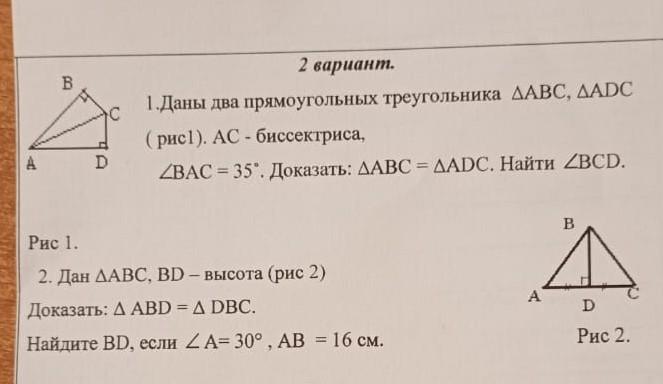 треугольник АВС равнобедреный, тк высота ВD является еще и медианой, следовательно АВD=DBC.