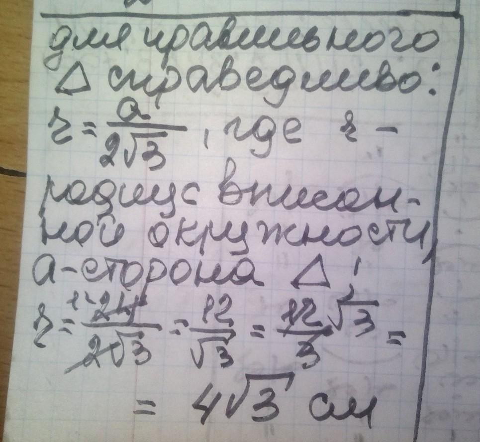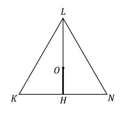 Трикутник KLN – правильний, його сторона дорівнює 24 см. Знайдіть радіус OH вписаного в нього кола.