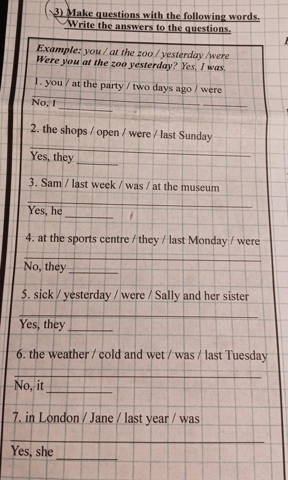 7. Was Jane in London last year? Yes, she was.