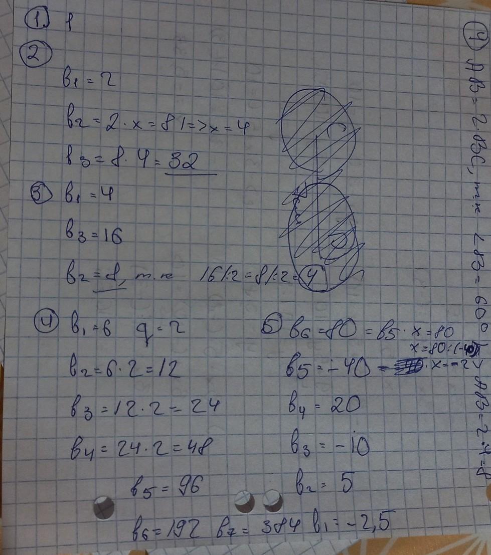2. Известно, что (bn) – геометрическая прогрессия, b1 = 2, b2 = 8. Найдите b3.
