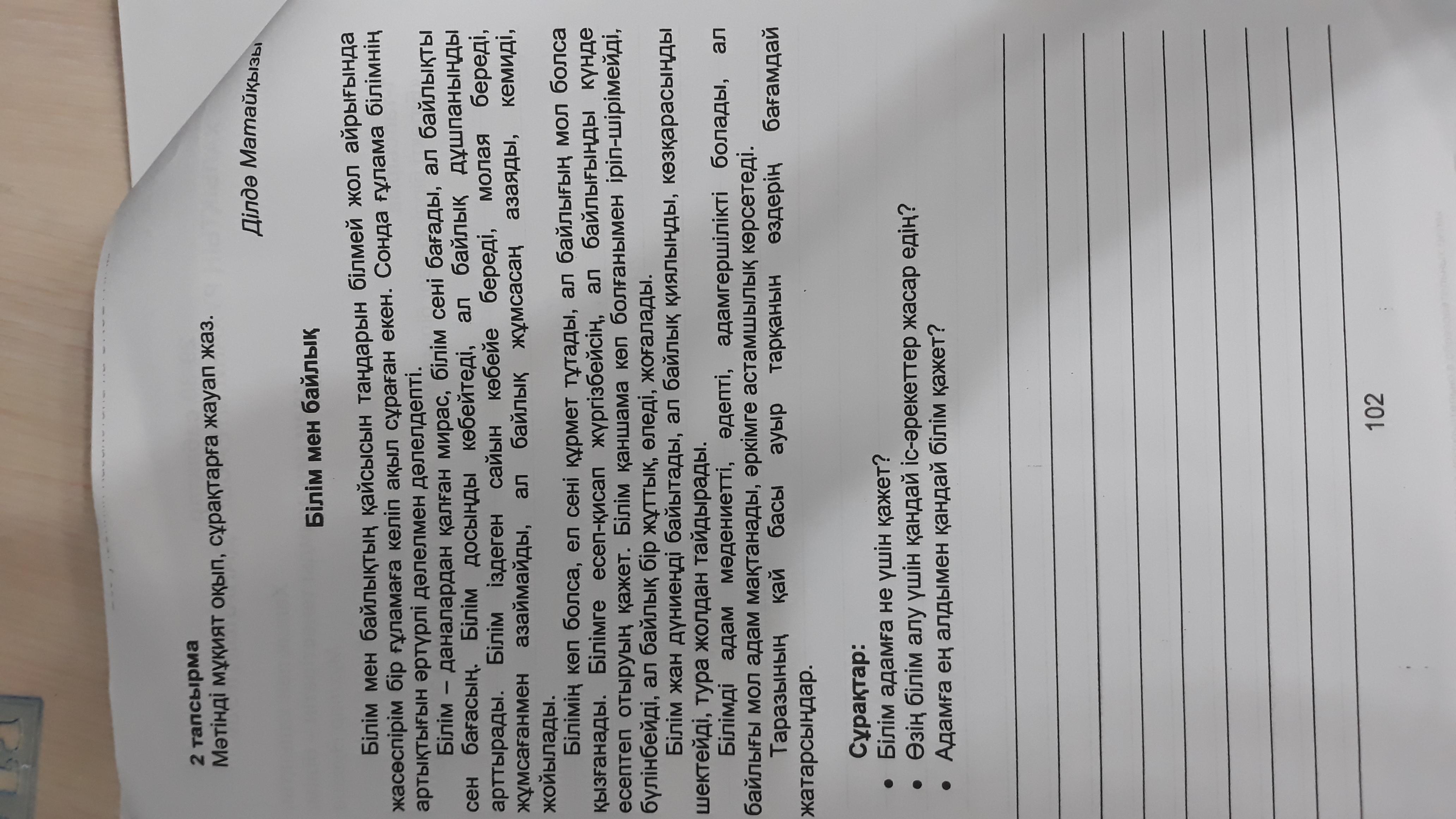 1) білім адамға әріп немесе жазуды үиретеді сауатынды ашады