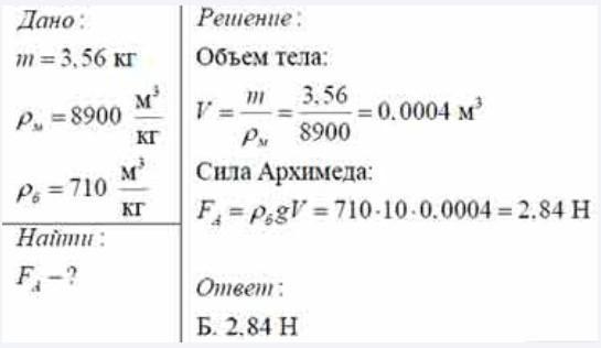 Медную плиту весом 2 кг опустили в бензин. найти силу архимеда, действующую на плиту.