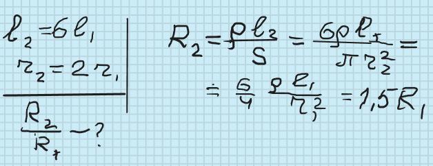 мідний провідник замінили іншим , теж мідним довжина якого в 6 раз більша а радіус у 2 рази більша .Визначте як і в скільки змінився опір провідника в наслідок такої зміни