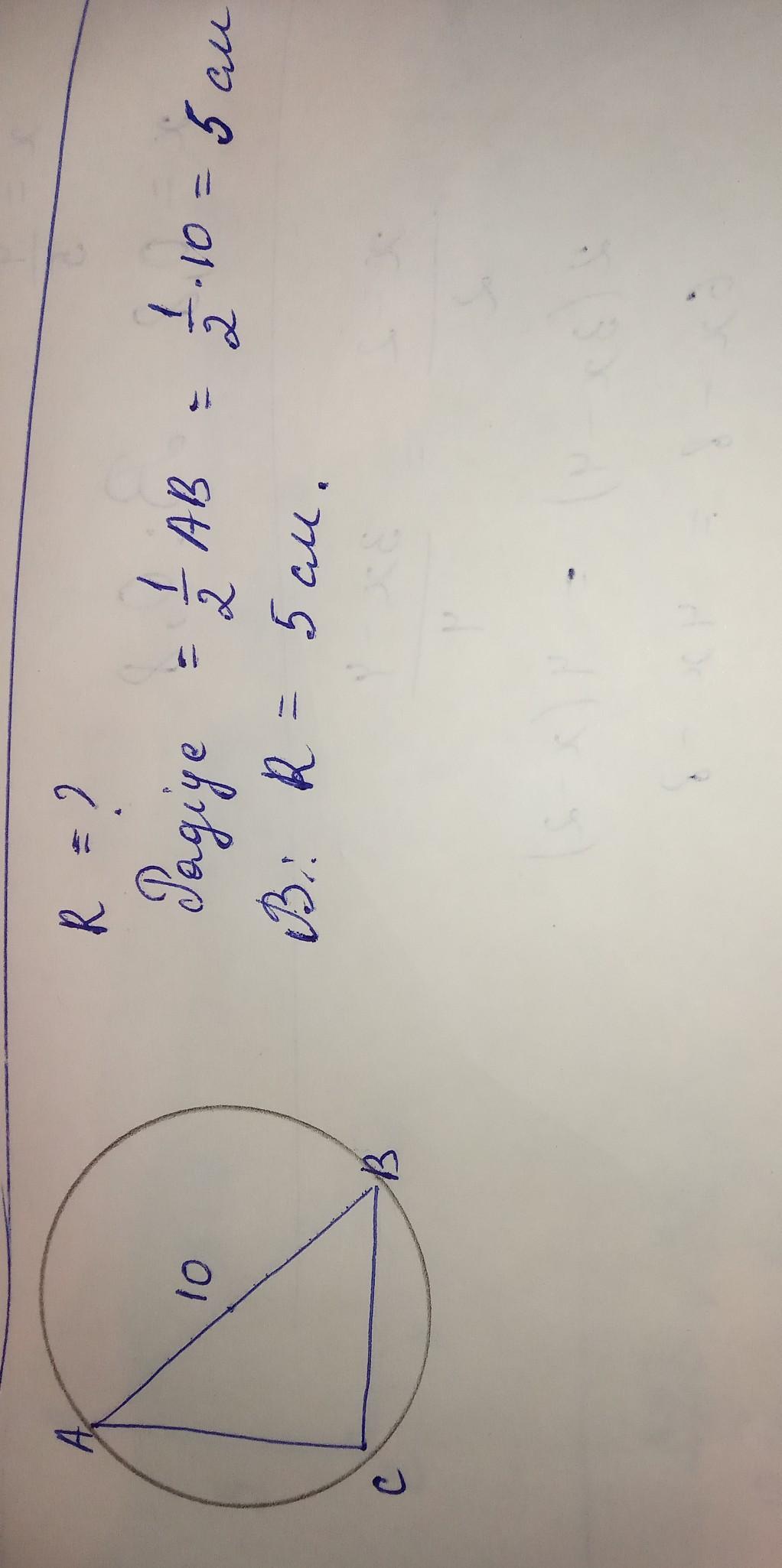 Гіпотенуза прямокутного трикутника 10 см. Знайди радіус описанного кола