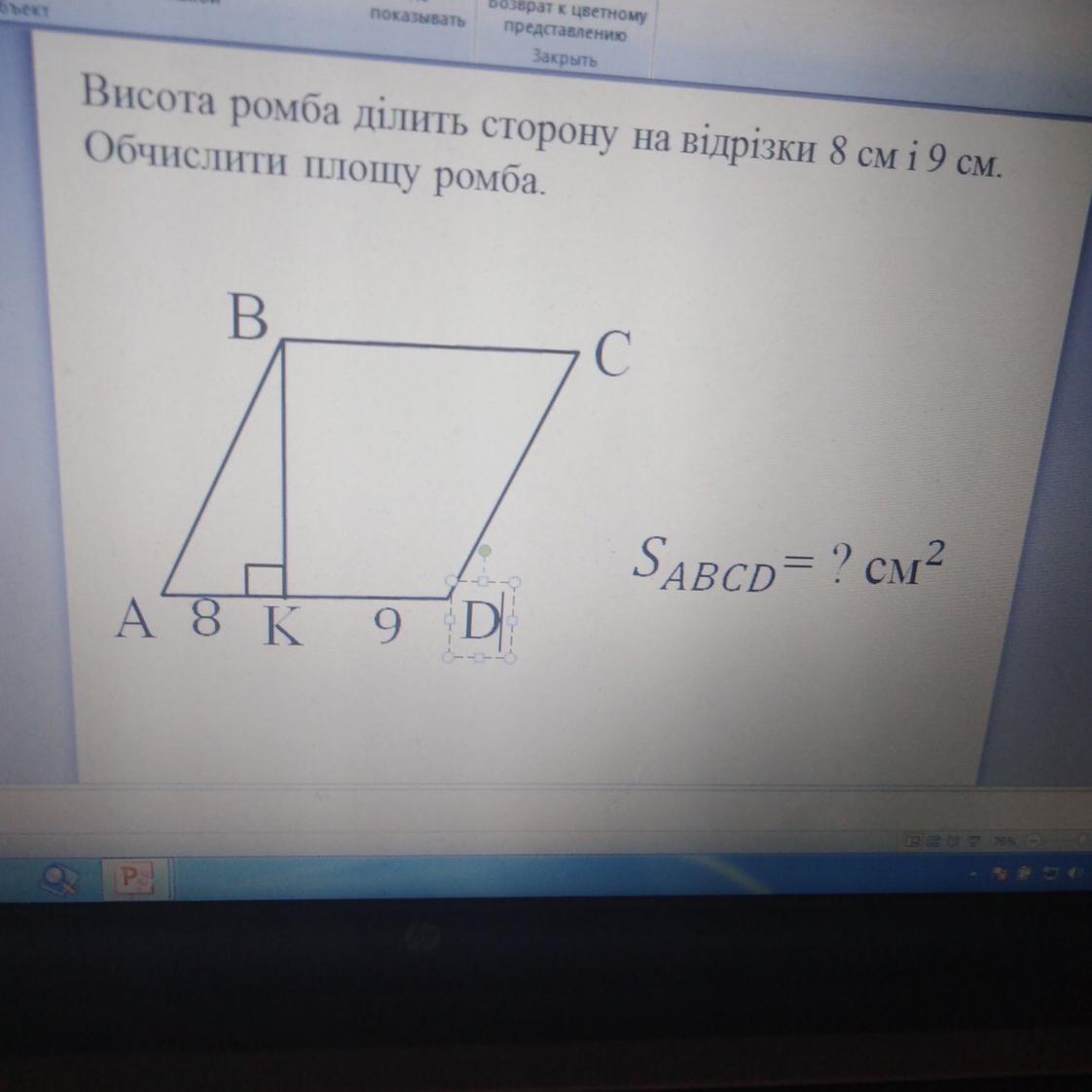 ∠АКВ = 90°, АВ = 17 см, АК = 8 см.