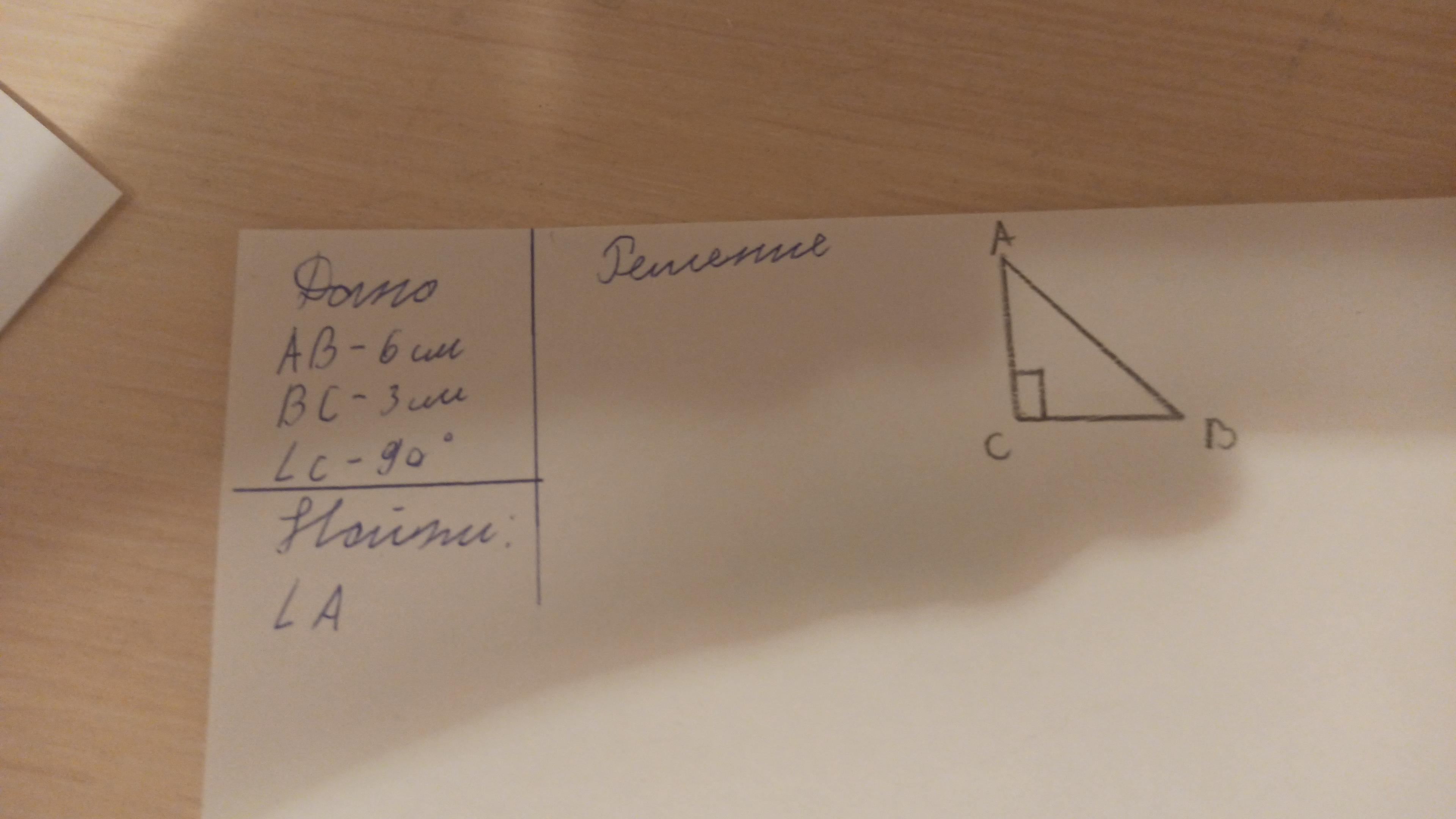 Если в прямоугольном треугольнике катет равен половине гипотенузы, то противоположный ему угол равен 30°