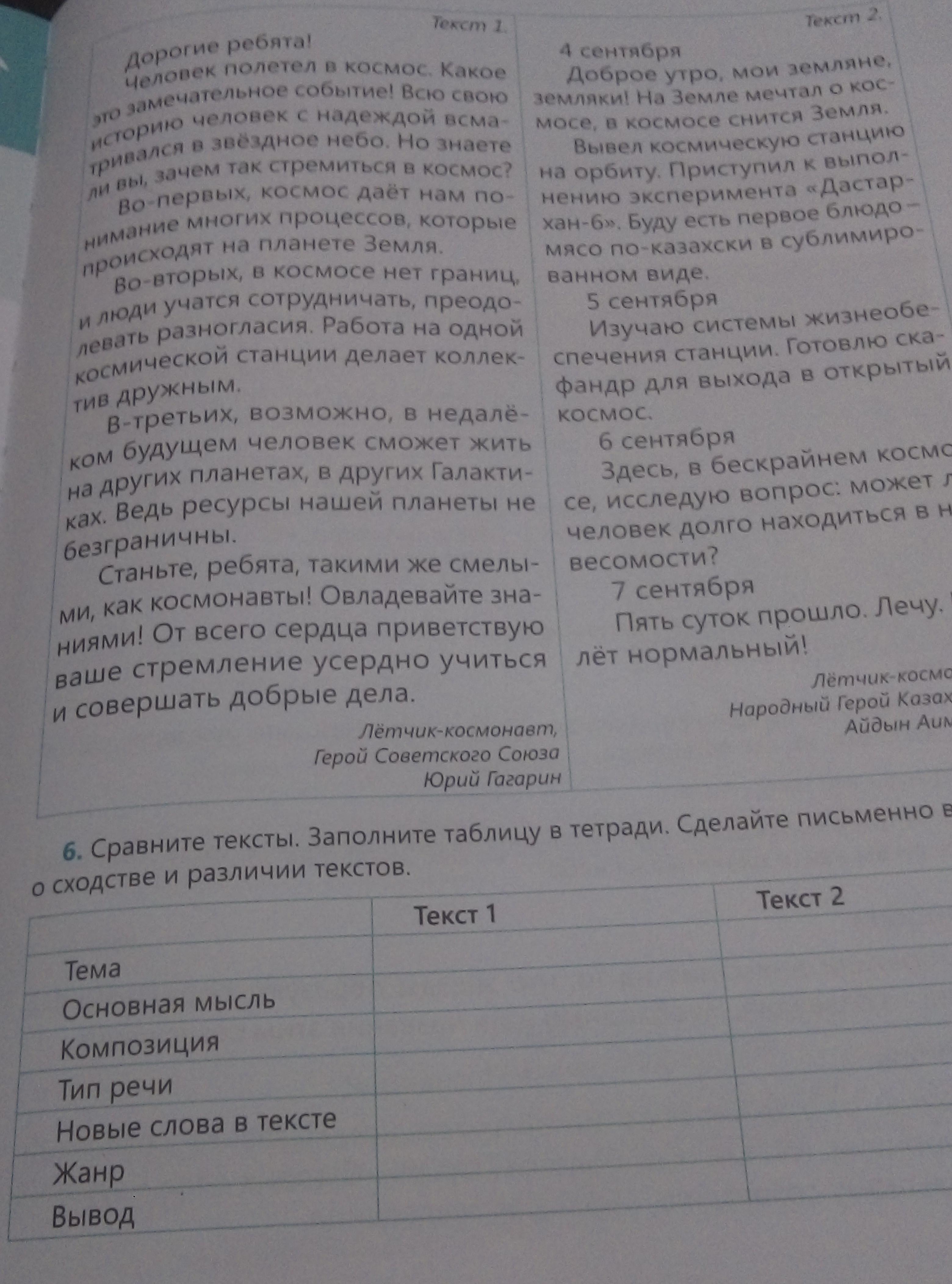Прочитайте письмо и дневник еосманавтов. Определите, какой из этих текстов является письмом а каким дневником. Обоснуйте своё мнение