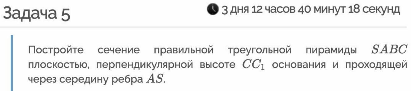 Задача 5. Постройте сечение правильной треугольной пирамиды SABC плоскостью, перпендикулярной высоте CC1 основания и проходящей через середину ребра AS