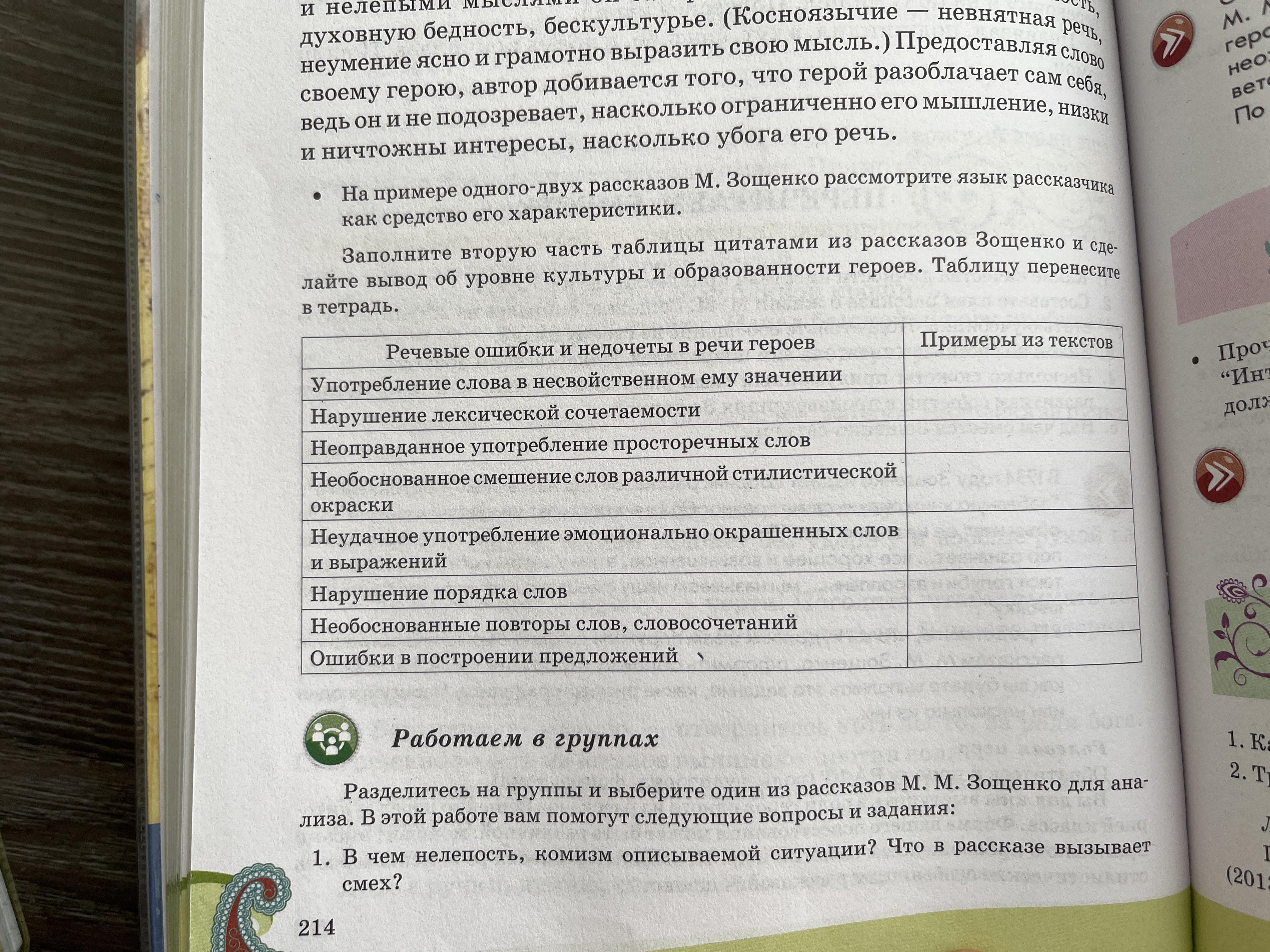 Помогите пожалуйста литература заполонить таблицу цитатами из рассказов Зощенко а именно Аристократка Любовь и Кинодрамма