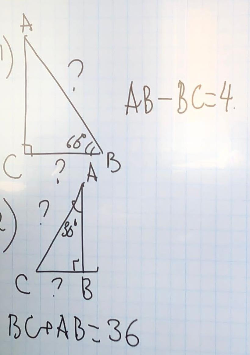 2) ВС=х , тогда АВ=2х по свойству угла в 30. Уравнение х+2х=36 , х=12. Тогда ВС=12 , АВ=24