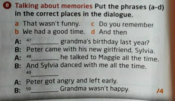 - Do you remember grandma`s birthday last year? Peter came with his new girlfriend,Sylvia.