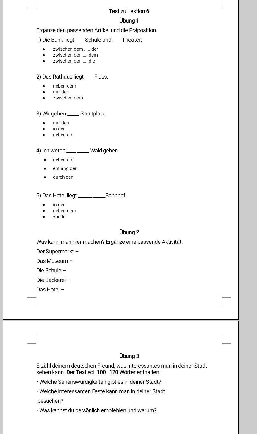 Ответ: сделал, только первые два задания, в третем нужно написать сочинение на тему: Достопримечательности в твоем городе.