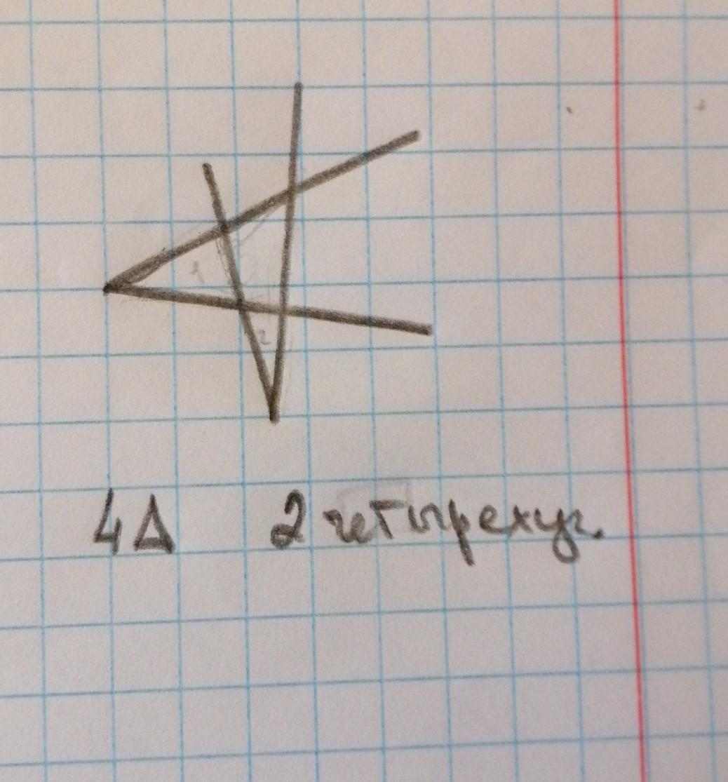 Сколько треугольников и четырехугольников образуется при пересечении двух углов, если каждая сторона угла пересекается со сторонами другого угла? Ответ: □треугольника и □четырехугольник. Прошу даю 50 баллов