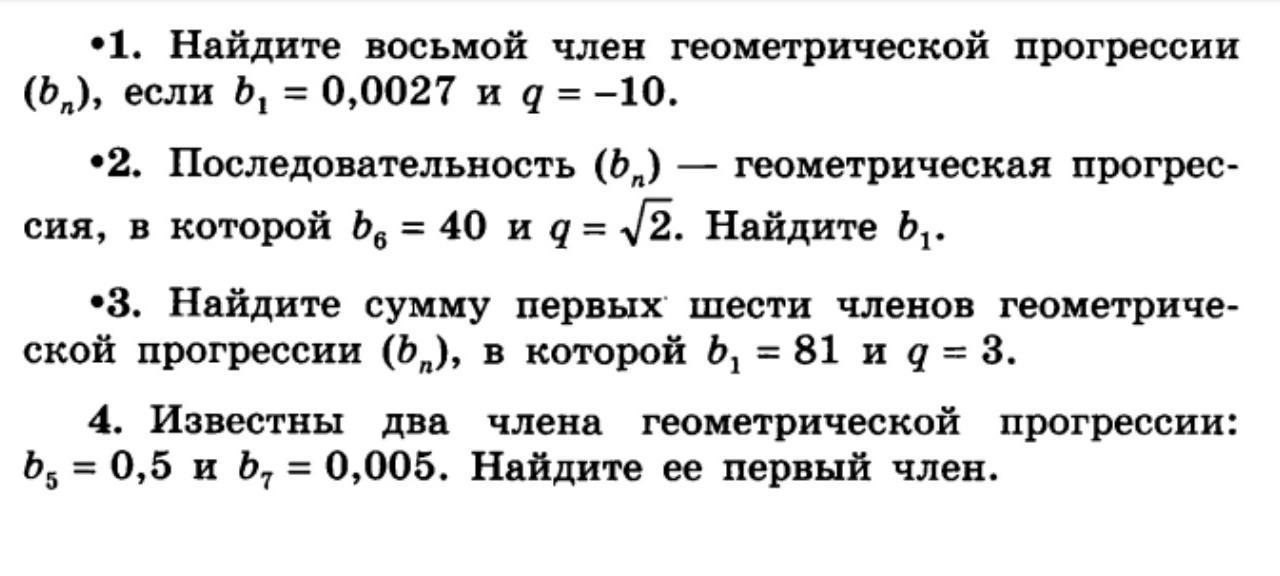 4)b5=b1•q^4;b7=b1•q^6;b1=b5/q^4; b7=b5•q^6/q^4=b5•q²; q²=b7/b5; q²=0,005/0,5=0,01; b1=0,5/(0,01)²=0,5/0,0001=5000