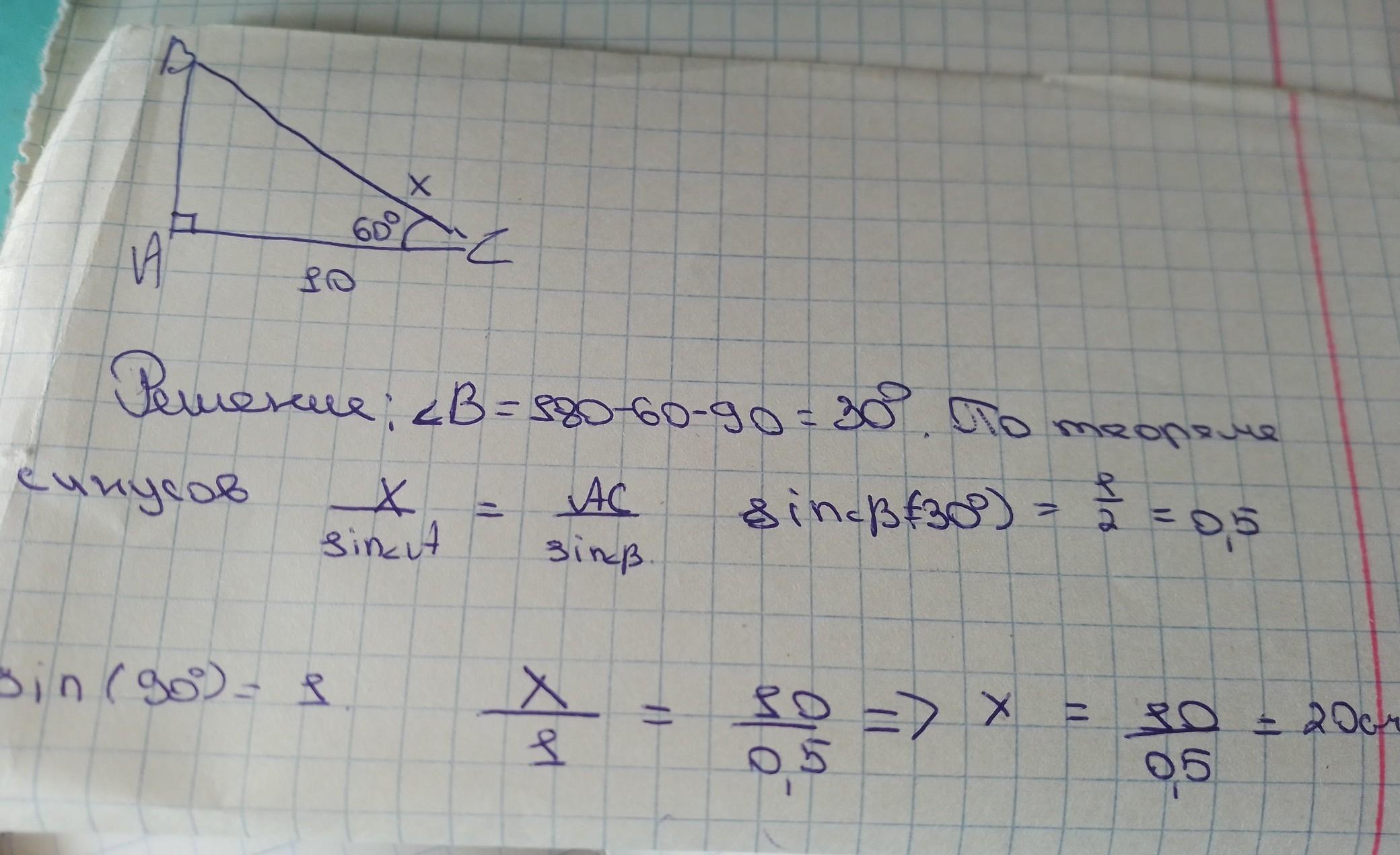 По теореме об острых углах найдём второй угол: 90⁰-60⁰=30⁰