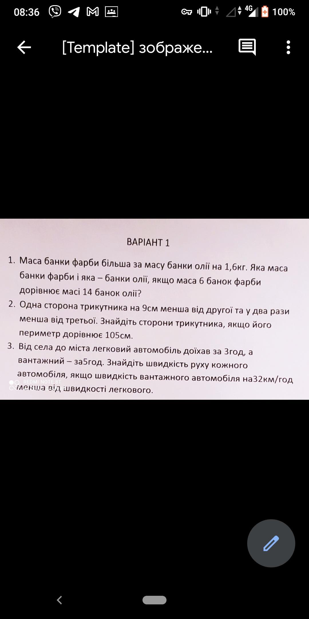 Відповідь: маса банки фарби 2,8 кг, а банки олії – 1,2 кг.