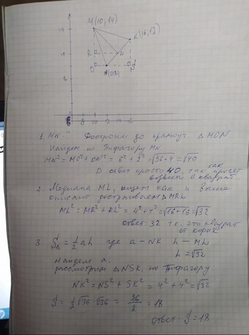 1.Найдите длину стороны MN. В ответ приведите квадрат полученной величины.