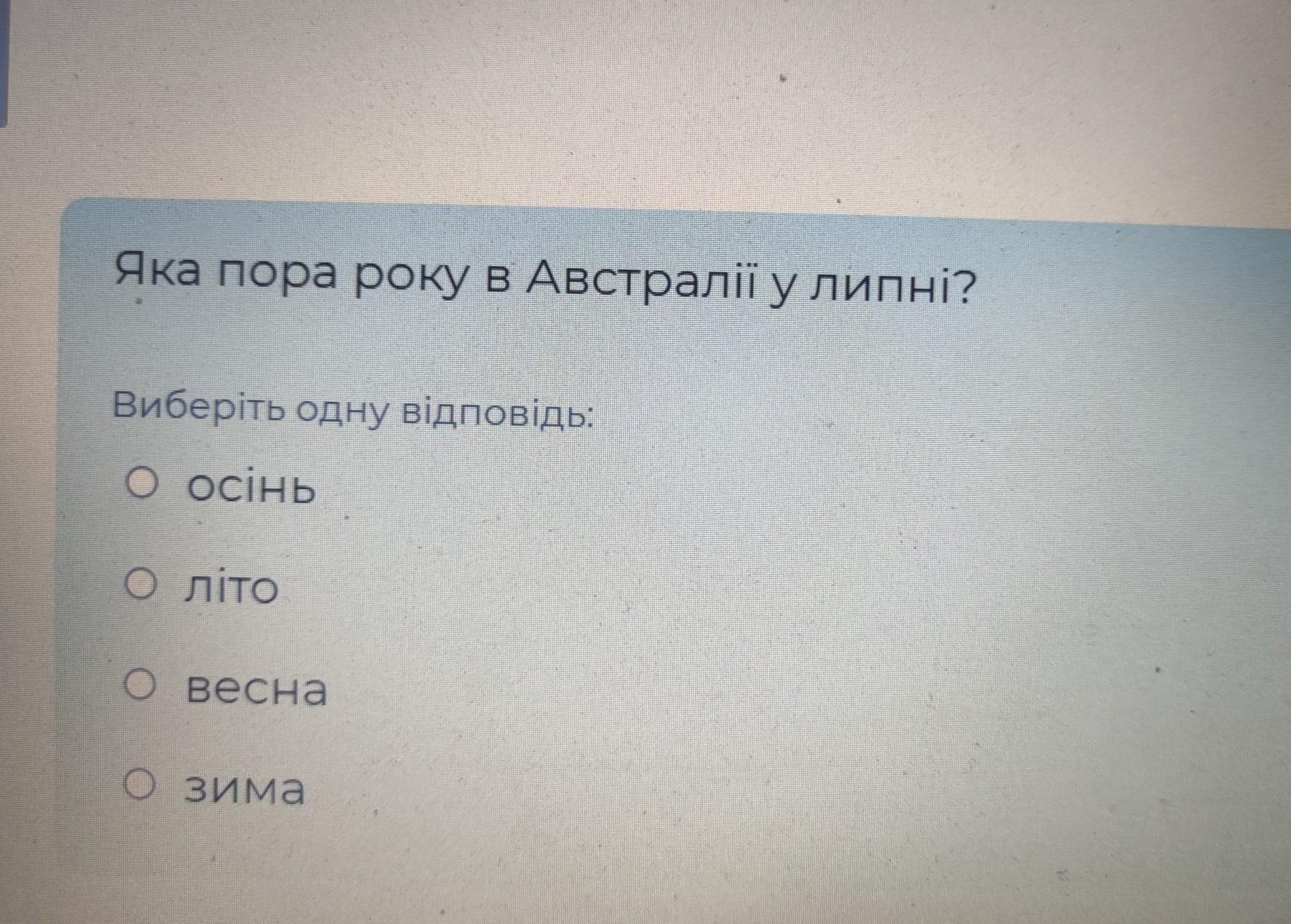 Зима, ведь Австралия находиться на Юге. С противоположной стороны. И получается что когда на Севере Лето, на Юге Зима.