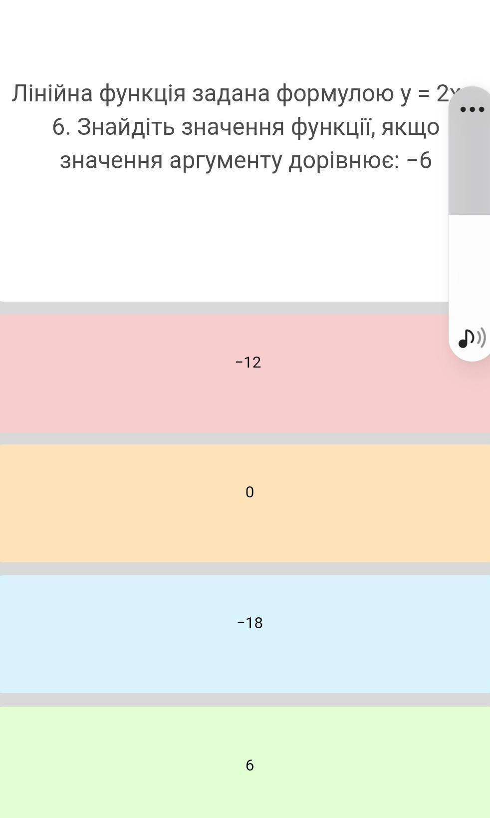 Аргумент - значення х, тобто y=-6*2-6. -18