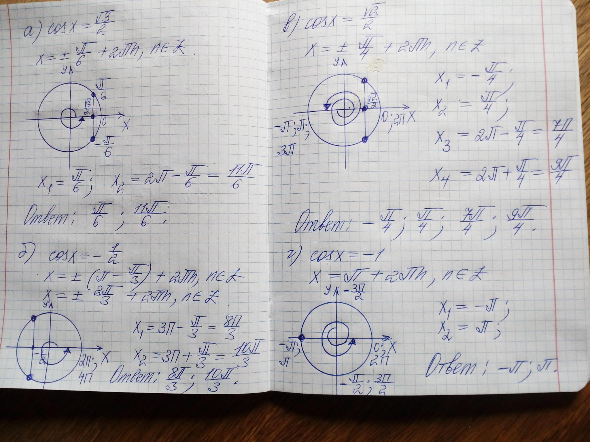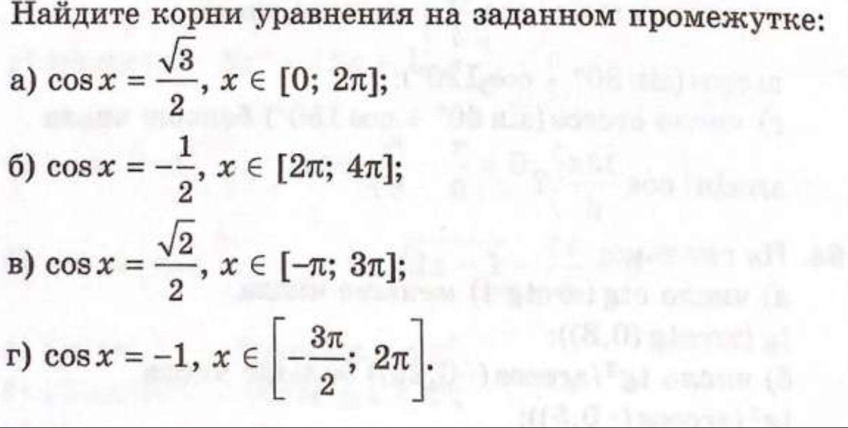 Найдите корни уравнений на заданном промежутке. Изображение прилогается. Сделайте на листе.