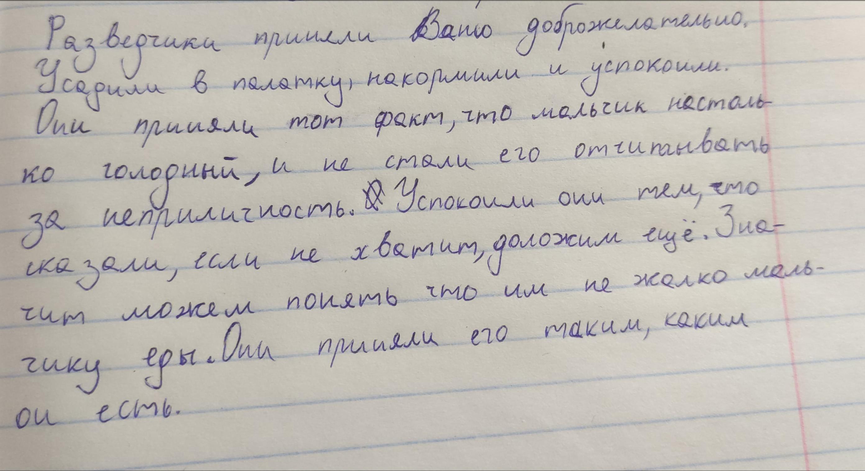 Используя исходный текст В. Катаева для обоснования своих суждений, напишите развернутый ответ на вопрос: «Как разведчики, которые много раз глядели в глаза смерти, относятся к незнакомому мальчику? ⊕