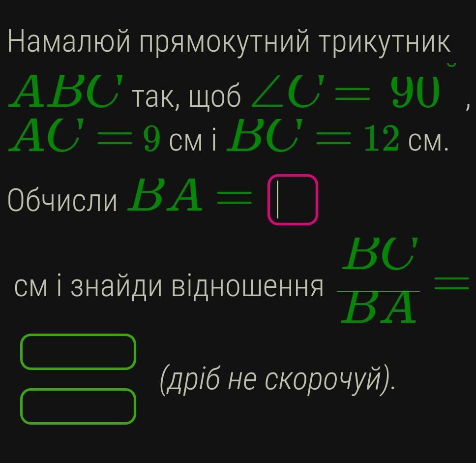 Так как катеты прямоуг.треугольника равны 9 и 12 соответственно, то по теореме Пифагора x^2=12^2+9^2=144+81=225