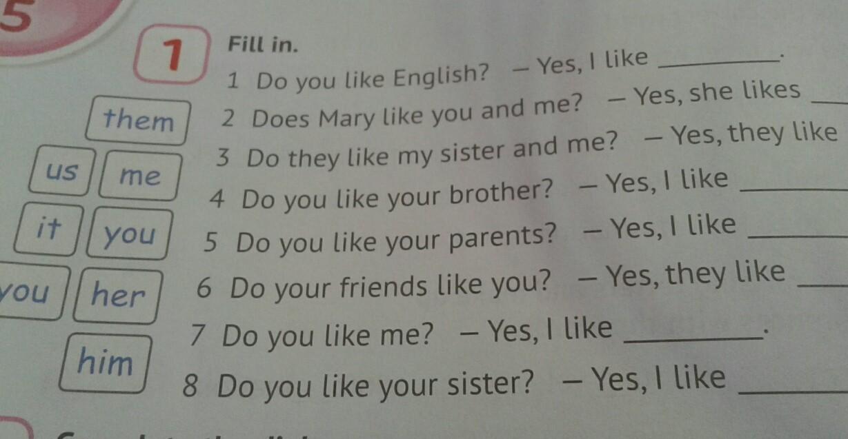 1. Do you like English? - Yes, I like it.