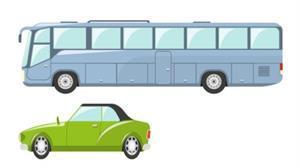Длина машины равна 3,84 м. Какова приблизительная длина автобуса? Запиши ответ сантиметрах.