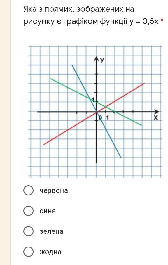 Ответ: прямая, изображённая на рисунке красным цветом является графиком функции у=0,5x.
