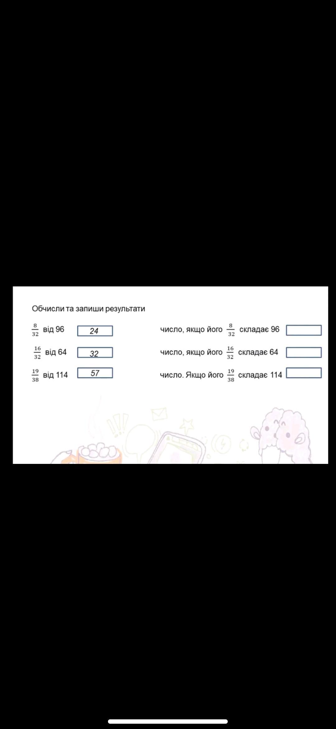 у нас написано 8/32 .32 делим на 8 получаем 4. теперь 96 делим на 4 и получается 24. так само делай и с другими