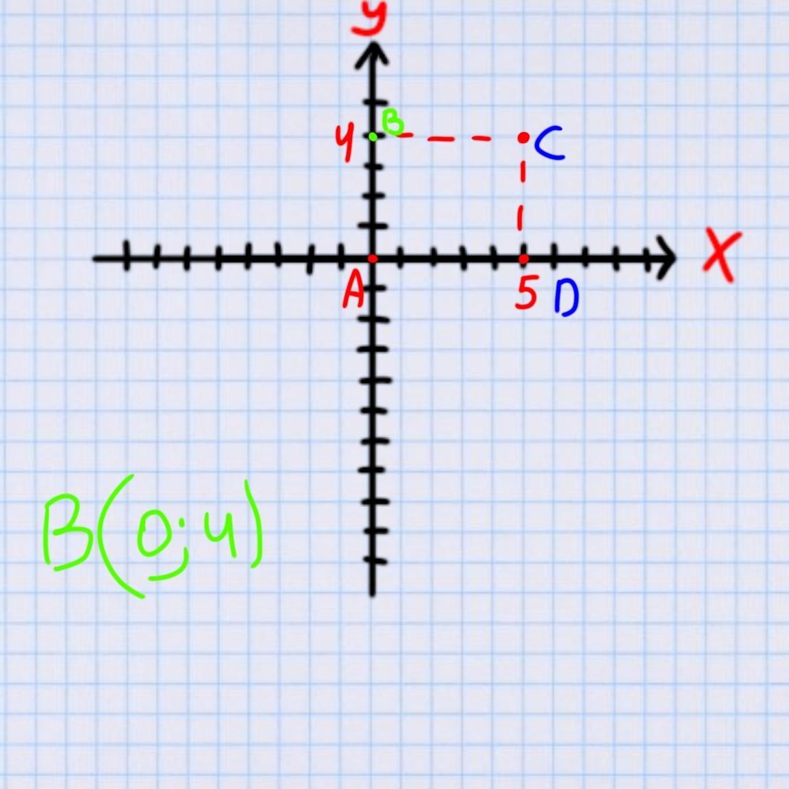 Известно, что точки A, B, C и D — вершины прямоугольника. Дано: A(0; 0); C (5; 4); D(5; 0). Определи координаты четвёртой вершины В: