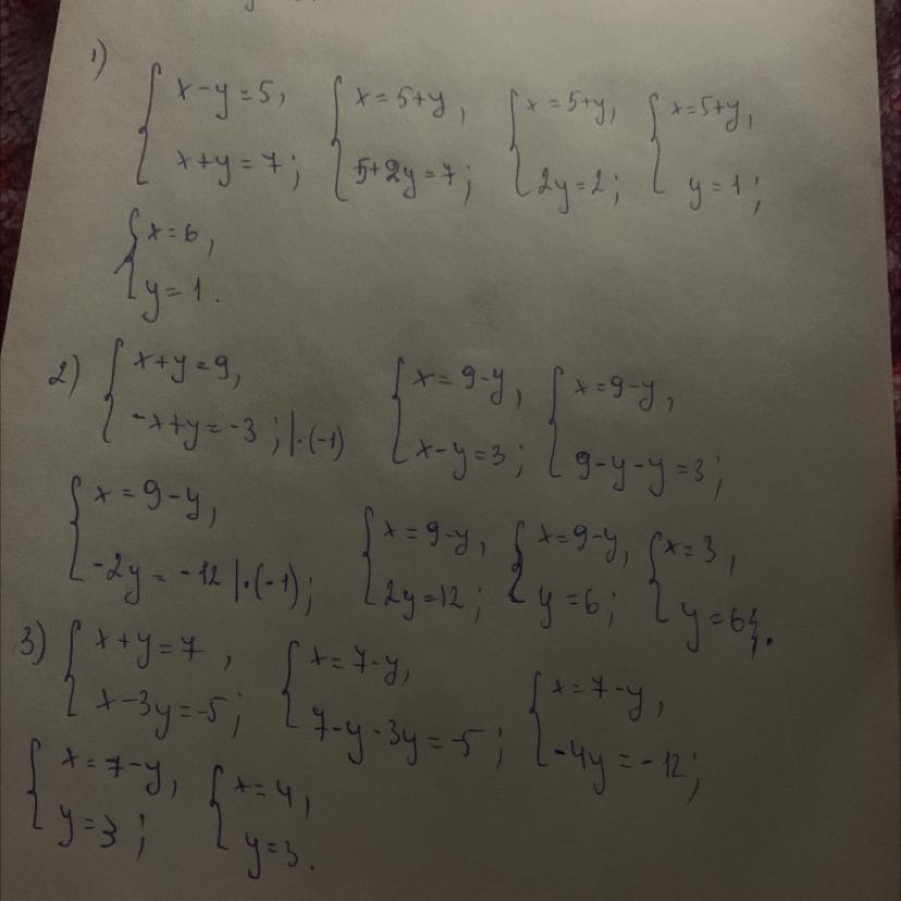 { x + y = 7 . Виразимо у через х у обох лін. рівняннях :