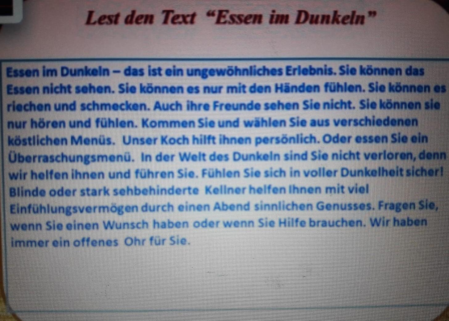 Слепые или сильно слабовидящие официанты помогут вам с большим