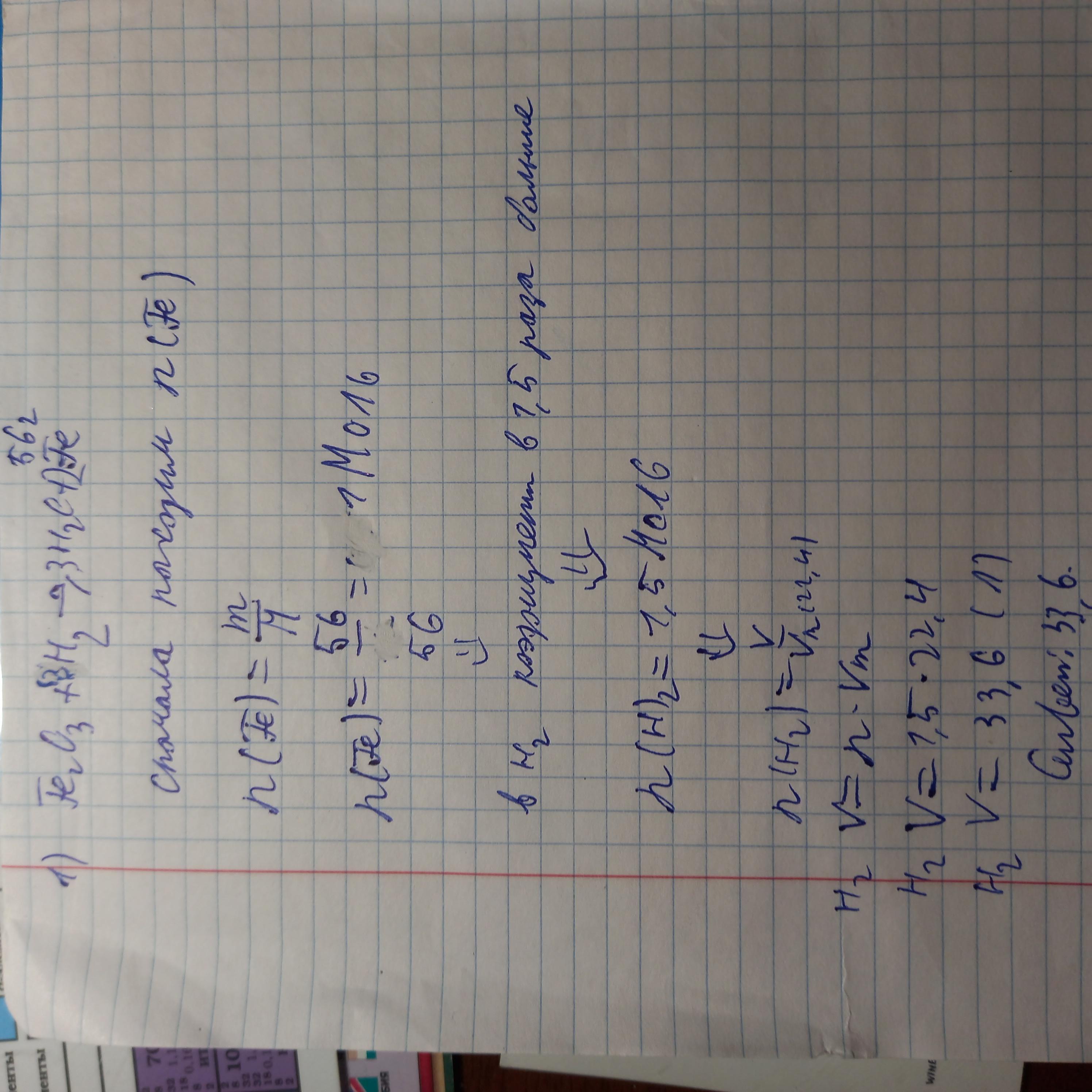 СРОЧНО, ДАМ 40 БАЛЛОВ 1)Задачи по химии Оксид железа(lll) реагирует с водородом с образованием железа и воды. какой объем водорода потребуется для образования 56грамм железа