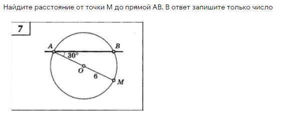 Потому что расстояние от прямой - есть перпендикуляр, проведённый у этой прямой, АМ - диаметр, радиус окружности 6, значит перед нами прямоугольный треугольник с гипотенузой 6.